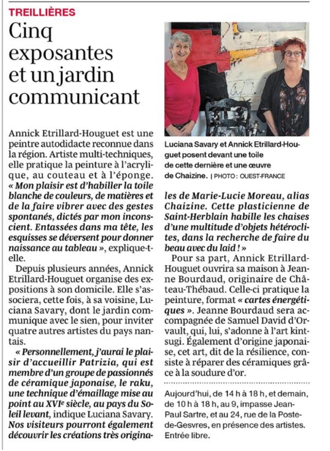 - 17 -18 mai L'Art prend l'air article Ouest France
